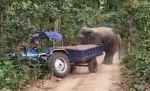 ट्रैक्टर से रेत चोरी करने वाले को दौड़ाया जंगली हाथी ने