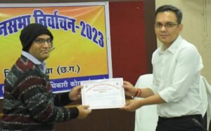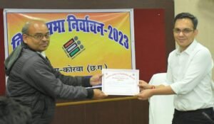 निर्वाचन कार्यों में महत्वपूर्ण भूमिका निभाने वाले सभी अधिकारियों-कर्मचारियों के प्रति आभार जताने के साथ कलेक्टर श्री सौरभ कुमार ने कार्यों को जिम्मेदारी तथा निष्पक्षता के साथ करने की प्रेरणा दी। उन्होंने निर्वाचन कार्यालय में पदस्थ कर्मचारी रामनिवास साहू, आर. के. श्रीवास, शीतल अग्रवाल, दीनदयाल भारद्वाज, पीताम्बर पटेल को प्रमाण पत्र देकर और हाथ मिलाकर सम्मानित किया।