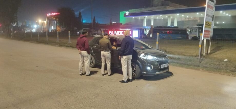 🔹 तीन सवारी, बिना नंबर, गलत तरीके से लिखे गये नंबर प्लेट, प्रेशर हार्न, संदेहास्पद वाहन, बिना सीट बेल्ट, काली फिल्म एवं संदिग्धों की जाँच की गई