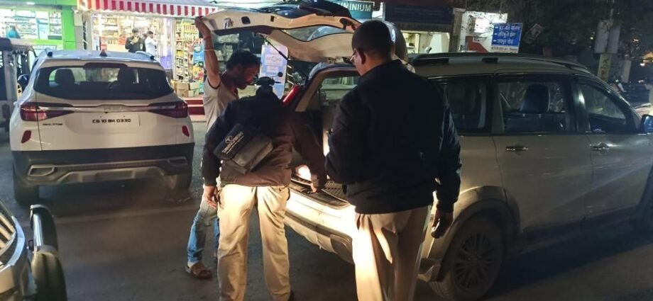 आज दिनांक 05/01/2024 को पुलिस अधीक्षक बिलासपुर श्री संतोष कुमार सिंह के निर्देशानुसार अतिरिक्त पुलिस अधीक्षक शहर श्री राजेंद्र जायसवाल, अतिरिक्त पुलिस अधीक्षक ग्रामीण श्रीमती अर्चना झा, नगर पुलिस अधीक्षक सिविल लाइन श्री संदीप कुमार पटेल (भापुसे), नगर पुलिस अधीक्षक कोतवाली श्रीमती पूजा कुमार (भापुसे) के मार्गदर्शन में बिलासपुर के प्रमुख चौराहों में, सभी ग्रामीण थानो में सरप्राइज चेकिंग लगाकर संदिग्ध वाहनों की चेकिंग की गई। ग्रामीण क्षेत्रों में शाम 6 बजे से 9 बजे तक तथा शहरी क्षेत्रों में रात्रि 8:30 बजे से 10:30 बजे तक सरप्राइज वाहन चेकिंग अभियान चलाया गया।