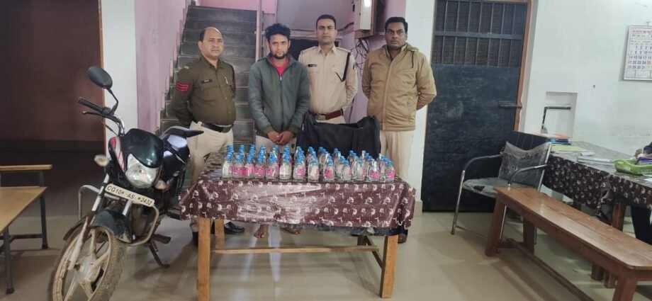 मामले का संक्षिप्त विवरण इस प्रकार है कि जिले में चल रहे निजात अभियान के मददेनजर श्रीमान पुलिस अधीक्षक महोदय बिलासपुर श्री संतोष सिंह, अतिरिक्त पुलिस अधीक्षक ग्रामीण बिलासपुर श्रीमती अर्चना झा एवं उप पुलिस अधीक्षक मुख्यालय श्री उदयन बेहार के निर्देशन में थाना प्रभारी मस्तूरी रक्द्रि अनंत द्वारा त्वरित कार्यवाही करते हुये टीम बनाकर तहसील ऑफिस के पीछे नहर किनारे पहुचकर घेराबंदी किया गया जहां पर आरोपी रघु रात्रे पिता रामायण रात्रे अपनी मोटर सायकल क्र CG 10 HF 2432 से अवैध रूप से देशी प्लेन शराब 90 पाव शीशी में परिवहन करते पाये जाने पर आरोपी से उक्त शराब के संबंध मे वेध कागजात पेश करने कहने पर कोइ कागजात नही होना बताने पर सभी शराब को जप्त किया गया आरोपी का कृत्य धारा 34(2) आबकारी एक्ट का अपराध घटित करना पाये जाने पर मौके पर 90 पाव देशी प्लेन शराब जिसकी कुल मात्रा 16.200 लीटर कीमती 7200 को जप्त कर आरोपी को गिर.कर आज दिनांक 21.01.24 को माननीय न्यायालय पेश किया गया है।
