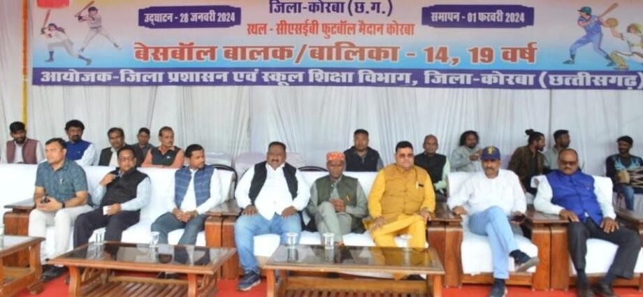 कोरबा 01 फरवरी 2024/ 67वीं राष्ट्रीय शालेय क्रीड़ा प्रतियोगिता के अंतर्गत जिले के सीएसईबी फुटबॉल ग्राउण्ड में आयोजित बेसबॉल प्रतियोगिता 2023-24 का आज विधायक कटघोरा श्री प्रेमचन्द्र पटेल की उपस्थिति में समापन हुआ। इस अवसर पर नगर निगम सभापति श्री श्याम सुंदर सोनी, जिला शिक्षा अधिकारी श्री जी.पी. भारद्वाज, क्रीडा अधिकारी श्री दीनू पटेल सहित अन्य जनप्रतिनिधि, विभागीय अधिकारी, विभिन्न प्रांतो से आए प्रतिभागी एवं उनके कोच उपस्थित थे।