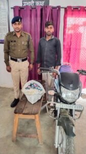 वरिष्ठ पुलिस अधीक्षक महोदय बिलासपुर श्री संतोष सिंह के द्वारा बिलासपुर जिले में निजात अभियान चलाया जा रहा है। निजात अभियान के अंतर्गत नशामुक्ति हेतु श्रीमान अतिरिक्त पुलिस अधीक्षक (ग्रामीण)श्रीमति अर्चना झा एवं अनुविभागीय पुलिस अधिकारी श्री उदयन बेहार के मार्गदर्शन में चौकी मल्हार थाना मस्तूरी में अवैध शराब बिक्री करने वालों के विरुद्ध लगातार कार्यवाही की जा रही है, जो दिनांक 03.02. 2024 को चौकी मल्हार पुलिस द्वारा आरोपी मंगलू टंडन पिता धुरसाय टंडन उम्र 22 साल निवासी बिनैका चौकी मल्हार जिला बिलासपुर (छ.ग.) से 66 पौवा देशी प्लेन मदिरा 11.880 लीटर शराब va परिवहन करने में प्रयुक्त मोटर साइकिल cg 10 bh 0485 को जप्त कर आरोपी को गिरफ्तार कर रिमांड पर भेजा गया है।