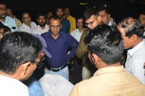 कोरबा 18 फरवरी 2024/ शहर की यातायात व्यवस्था को बेहतर बनाने की दिशा में पहल करते हुए जिले के कलेक्टर श्री अजीत वसंत ने देर शाम आज दूसरी बार सड़क पर उतर कर सीएसईबी चौक, सुनालिया मार्ग, संजय नगर रेलवे क्रॉसिंग, सर्वमंगला चौक, बरमपुर रोड़ सहित कुसमुंडा-इमली छापर मार्ग का अवलोकन किया। उन्होंने शहरों में यातायात को सुगम बनाने और ट्रैफिक में अवरोधक बन रहे कारणों को मौके पर जाकर जानने के साथ ही लोक निर्माण विभाग,सेतु विभाग,नगर पालिक निगम, पुलिस,परिवहन विभाग सहित एसईसीएल के अधिकारियों को आवश्यक दिशा निर्देश दिए। इस दौरान पुलिस अधीक्षक श्री सिद्दार्थ तिवारी, निगमायुक्त श्रीमती प्रतिष्ठा ममगाई, एसडीएम कोरबा श्री श्रीकांत वर्मा सहित अन्य अधिकारी उपस्थित थे।