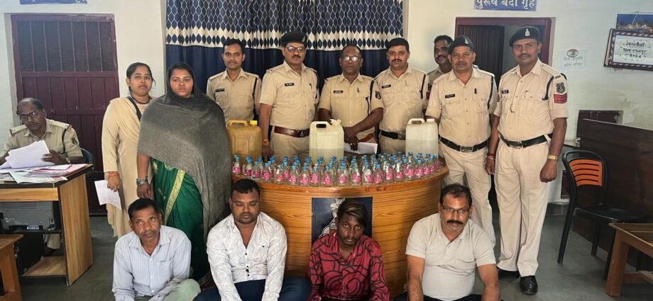 श्रीमान पुलिस अधीक्षक महोदय बिलासपुर श्री रजनेश सिंह के द्वारा जिले में नशे के कारोबार पर अंकुश लगाने हेतु निदेर्शित किया गया है जिसके परिपालन में श्रीमान अतिरिक्त पुलिस अधीक्षक महोदया (ग्रामीण) श्रीमती अर्चना झा एवं श्रीमान अनुविभागीय अधिकारी (पुलिस) कोटा श्री सिद्धार्थ बघेल के मार्गदर्शन में नवनियुक्त थाना प्रभारी प्रशि. आई.पी.एस अजय कुमार के नेतृत्व में टीम गठित कर अवैध शराब बिक्री करने वाले कोचियों के विरूद्ध रेड कार्यवाही करने हेतु मुखबिर तैनात किया गया था। जो दिनाँक 07/03/2024 को मुखबिर सूचना पर थाना रतनपुर क्षेत्र के अलग -अलग स्थानों पर रतनपुर पुलिस टीम द्वारा रेड कार्यवाही कर 1.ग्राम जाली की रहने वाली संतोषी नेताम के घर के बाड़ी से 07 लीटर कच्ची महुआ शराब कीमती 1050 रूपये 2. ग्राम रानीगाँव निवासी रोशन डगर्जी के कब्जे से 44 नग देशी प्लेन शराब कुल 7.920 लीटर कीमती 3520 रूपये, 3.ग्राम कडरी के अर्जून खैरवार के घर बाड़ी से 08 लीटर कच्ची महुआ शराब कीमती 1200 रूपये, 4.ग्राम बेलपारा बेलतरा निवासी संतोष नेताम के घर के आँगन से 10 लीटर कच्ची महुआ शराब कीमती 1500 रूपये, 5. छोटू ढाबा अंधियारीपारा के संचालक राजेन्द्र कश्यप के ढाबा से 50 नग देशी प्लेन शराब कुल 09 लीटर 4000 रूपये को उक्त व्यक्तियों से बरामद कर उक्त शराब को जप्त कर आरोपियों के विरूद्ध धारा 34(2) आबकारी एक्ट के तहत कार्यवाही कर आरोपियों को गिरफ्तार कर न्यायिक रिमाण्ड पर भेजा गया।