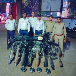 *इसी तारतम्य में आज सहायक उपनिरीक्षक डी०डी० सिंह एवं टीम द्वारा 08 मोडिफाइड साइलेंसर युक्त बुलेट एवं 02 प्रेशर हॉर्न लगे वाहन को थाने लाकर कार्रवाई की गई।*