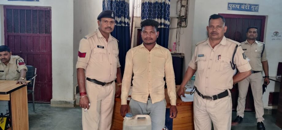 बिलासपुर!मामले का संक्षिप्त विवरण इस प्रकार है कि पुलिस अधीक्षक महोदय जिला बिलासपुर श्री रजनेश सिंह (भा.पु.से.) के द्वारा जिले में नशे के व्यापारियों पर अंकुश लगाने, प्रहार अभियान के तहत लगातार कार्यवाही करने निर्देशित किया गया है। जिसके परिपालन में श्रीमान अतिरिक्त पुलिस अधीक्षक महोदया (ग्रामीण) श्रीमती अर्चना झा एवं श्रीमान अनुविभागीय अधिकारी (पुलिस) कोटा श्री सिद्धार्थ बघेल के मार्गदर्शन में थाना प्रभारी (प्रशिक्षु भा.पु.से.) अजय कुमार के नेतृत्व में टीम गठित कर अवैध शराब रखने व बिक्री करने वाले कोचियों के खिलाफ रेड कार्यवाही करने हेतु मुखबीर तैनात किया गया था। कि दिनाँक 16/03/2024 को जरिये मुखबीर पर ग्राम घॉसीपुर में रोहित कुमार पोर्ते के घर रेड कार्यवाही किया जहाँ उक्त व्यक्ति के घर के बाड़ी से 10 लीटर कच्ची महुआ शराब कीमती करीबन 2000 रूपये रखे मिला। जिसे जप्त कर आरोपी के विरूद्ध आबकारी एक्ट की कार्यवाही कर आरोपी को गिरफ्तार कर न्यायिक रिमाण्ड पर भेजा गया।