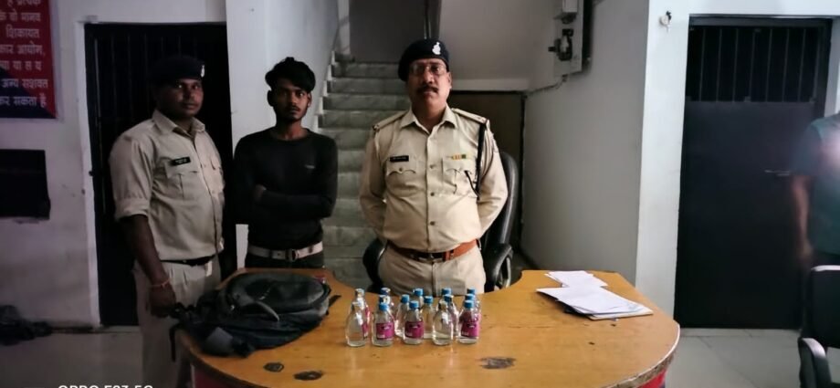 बिलासपुर ।पुलिस अधीक्षक महोदय श्री रजनेश सिंह (भा.पु.से.) बिलासपुर द्वारा लोक सभा चुनाव के मद्देनजर अवैध नशे पर कार्यवाही करने निर्देशित किया गया है, जिसके परिपालन अतिरिक्त पुलिस अधीक्षक श्री उमेश कश्यप ,सी.एस.पी. (कोतवाली) श्रीमति पूजा कुमार (भा.पु.से.) के निर्देशन में थाना क्षेत्रांतर्गत अवैध शराब बिक्री करने वालों की धरपकड़ अभियान चलाया गया । इसी दौरान टीम को सूचना मिली कि प्रमोद विश्वकर्मा नामक व्यक्ति संतन नगर लाल खदान मरघट के पास अवैध रूप से देशी प्लेन शराब बिक्री करने हेतु रखा है कि सूचना पर सूचनास्थल पहुंचकर घेराबंदी कर उक्त व्यक्ति को पकड़ा गया जिसका नाम पता पूछने पर अपना नाम प्रमोद विश्वकर्मा पिता स्वर्गीय राजेश विश्वकर्मा उम्र 19 साल संतन नगर लाल खदान थाना तोरवा जिला बिलासपुर छत्तीसगढ़ बताया जिसके कब्जे से अवैध देशी प्लेन शराब कुल 3.060 लीटर जप्त किया गया है आरोपी के विरूद्ध आबकारी एक्ट के प्रावधानों के अंतर्गत कार्यवाही किया गया है ।
