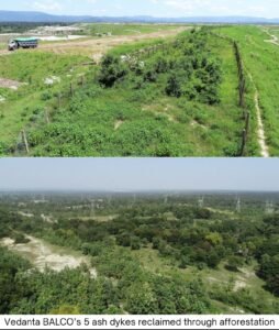फ्लाई ऐश एक हाई-वॉल्यूम, लो-इफेक्ट बायप्रोडक्ट होता है जो थर्मल पावर के उत्पादन में निकलता है। फ्लाई ऐश का इस्तेमाल सर्कुलर इकॉनॉमी में होता है नतीजतन ऐश स्टोरेज एरिया का वनीकरण किया जा सकता है। रिक्लेमेशन प्रक्रिया के तहत ऐश डाइक्स को कई अवस्थाओं से गुजरना होता है जिनमें मिट्टी का आवरण, स्थिरीकरण, वन पारिस्थितिकी विकसित करने के लिए लैंडस्केपिंग, मूल वृक्ष प्रजातियों का रोपण व निरंतर निगरानी शामिल होते हैं। इन कोशिशों के फलस्वरूप यह इलाका कई स्थानीय पेड़-पौधों की किस्मों जैसे करंज, शीशम, नीम, अमसोल व गुलमोहर वृक्षों का घर बन गया है। कंपनी द्वारा लगाए गए इन पेड़ों की बदौलत यहां जैव विविधता फल-फूल रही है।