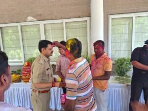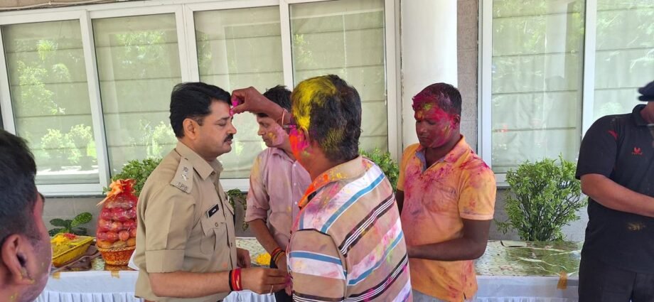 जिला पुलिस बिलासपुर के अधिकारी एवं कर्मचारियों के द्वारा होली पर्व के दौरान क़ानून/सुरक्षा व्यवस्था को लगन एवं मेहनत से ड्यूटी कर शांतिपूर्वक सम्पन्न कराया गया। होली पर्व के दूसरे दिन दिनांक 26/3/24 को पुलिस ऑफ़िसर्स मेस ,पुलिस लाइन, समस्त थाना चौकी में पुलिस होली हर्षोल्लास से मनाया गया, जिसमें श्री रजनेश सिंह (भापुसे) पुलिस अधीक्षक ज़िला बिलासपुर ने सभी पुलिस अधिकारी कर्मचारी एवं पुलिस परिवार को होली की शुभकामनाएँ दी। अधिकारियों एवं पुलिस स्टाफ के द्वारा एक दूसरे को रंग गुलाल लगाकर होली की शुभकामनाएं और बधाई देकर ख़ुशी मनाये।