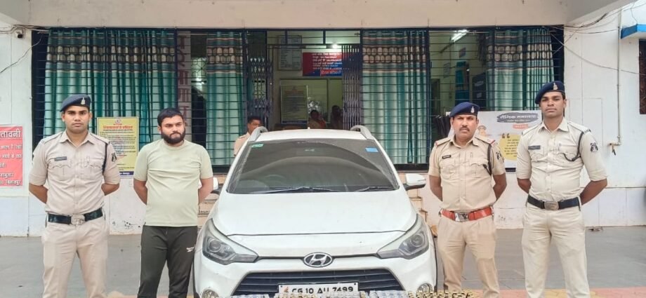 दिनांक 24.03.2024 को थाना प्रभारी कोटा श्री रजनीश सिंह को सूचना मिला की बिलासपुर से एक व्यक्ति i20 कार CG 10 AU 7499 में प्रतिबंधित ONEREX SYRUP सिरप बिक्री करने हेतु कोटा लोरमी मार्ग में ले जा रहा है। सूचना पर तत्काल एसीसीयु टीम तथा कोटा पुलिस टीम द्वारा गनियारी के पास घेराबंदी कर रेड कार्यवाही किया गया। जहां बिलासपुर के तरफ से आ रही i20 कार CG 10 AU 7499 को रोककर पूछताछ कर कार को चेक करने पर कार की डिक्की में 02 सफेद बोरी में भरा 400 नग प्रतिबंधित ONEREX SYRUP सिरप मिला। सिरप के संबंध में पूछताछ करने पर आरोपी बृजेश कछुवाहा ने बताया कि रीवा मध्य प्रदेश से बिलासपुर आने वाली सब्जी गाड़ी वाहन में कॉस्मेटिक का सामान है कहकर लाया गया। आरोपी बृजेश कछुवाहा के कब्जे से प्रतिबंधित ONEREX SYRUP 400 नग कीमती 68000 रुपये, एक एप्पल मोबाइल ₹32000 तथा एक i20 कार कीमती ₹6 लाख जुमला कीमती 7 लाख रुपए को जप्त कर कब्जा पुलिस किया गया। आरोपी *बृजेश कछुवाहा पिता मुरारी लाल कछुआ उम्र 34 साल साकिन पुराना बस स्टैंड के पास बिलासपुर थाना सिविल लाइन जिला बिलासपुर (छ.ग.)* के विरुद्ध अपराध धारा सबूत पाये जाने पर विधिवत् कार्यवाही कर आरोपी को गिरफ्तार कर न्यायिक रिमांड पर भेजा गया। पुलिस अधीक्षक ने इस बेहतर और प्रभावी कार्यवाही के लिए ज़िले के अतिरिक्त पुलिस अधीक्षक शहर एवं ग्रामीण तथा अनुविभागीय पुलिस अधिकारी कोटा श्रीमती नूपुर उपाध्याय थाना प्रभारी रजनीश सिंह, एसीसीयु प्रभारी राजेश मिश्रा और स्टाफ़ की सराहना की है ।