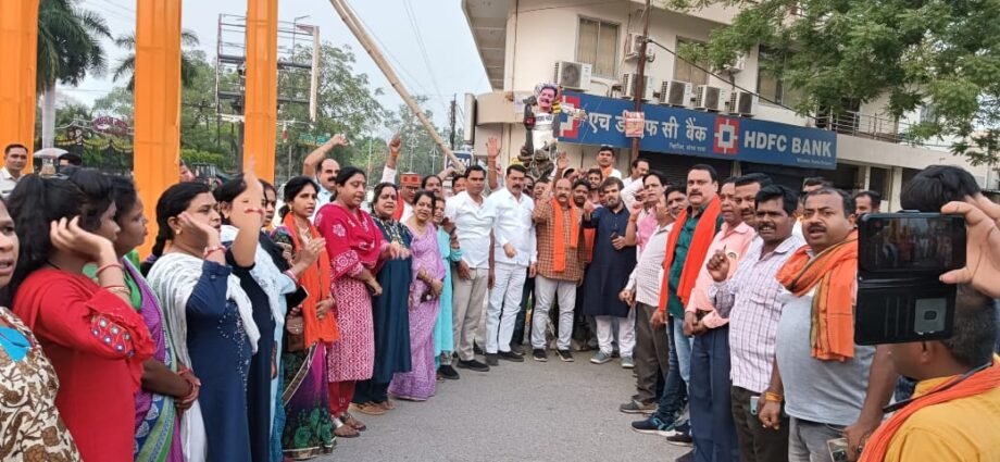 छत्तीसगढ़ में नेता प्रतिपक्ष चरण दास महंत के द्वारा देश के प्रधानमंत्री के लिए अभद्र भाषा का प्रयोग करते हुए डंडे से सर फोड़ने की बात करने व जनता को उकसाने के विरोध में कोसाबाडी मंडल भाजपा के द्वारा सुभाष चौक पर चरण दास महंत के पुतले पर जूते एवं चप्पलों की माला पहनाकर विरोध प्रदर्शन किया गया.