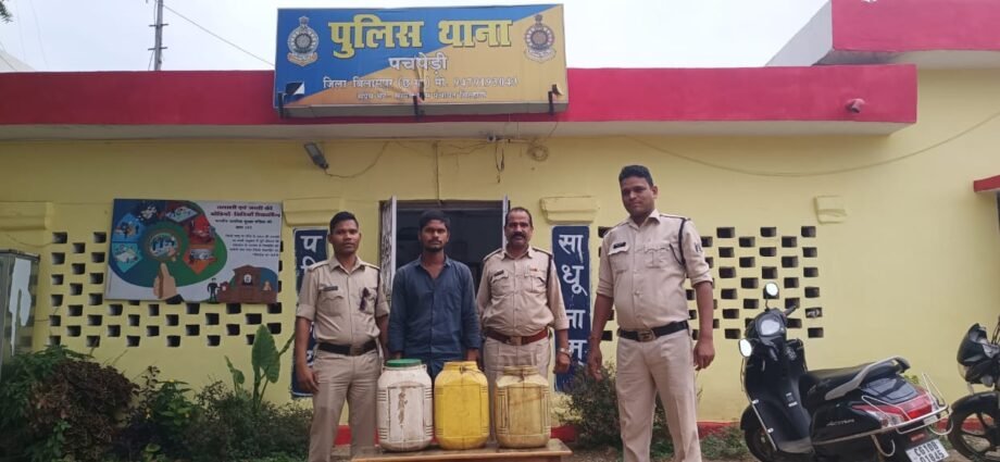 बिलासपुर।पुलिस अधीक्षक बिलासपुर रजनेश सिंह द्वारा अवैध शराब के विरुद्ध लगातार सख्त कार्यवाही करने के निर्देश दिए गए हैं जिसके परिपालन में थाना पचपेड़ी पुलिस द्वारा अवैध रूप से महुआ शराब बिक्री हेतु कब्जे में रखने वाला एक आरोपी अभिषेक मरावी पिता लक्ष्मीनारायण उम्र 23 साल निवासी बेल्हा थाना पचपेड़ी* के कब्जे से40 लीटर कच्ची महुआ शराब जिसकी कीमत लगभग 8000रु के साथ गिरफ्तार कर न्यायिक रिमांड पर भेजा गया।