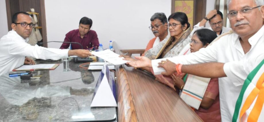 कोरबा लोकसभा से कांग्रेस प्रत्याशी सांसद ज्योत्सना चरणदास महंत ने मंगलवार को शुभ मुहुर्त में अपना नामांकन पत्र रिटर्निंग ऑफिसर के समक्ष दाखिल किया। इस दौरान उनके साथ पूर्व मुख्यमंत्री भूपेश बघेल, नेता प्रतिपक्ष डॉ. चरणदास महंत, पीसीसी चीफ दीपक बैज, पूर्व मंत्री जयसिंह अग्रवाल उपस्थित रहे। ज्योत्सना महंत के नामांकन अवसर पर डॉ. भीमराव अंबेडकर ओपन एयर आडिटोरियम में आमसभा आयोजित की गई जिसमें कोरबा के अलावा रामपुर, कटघोरा, पाली-तानाखार, मरवाही, भरतपुर सोनहत, मनेन्द्रगढ़ व बैकुंठपुर-कोरिया विधानसभा से कांग्रेस के जिलाध्यक्ष, पूर्व मंंत्री, पूर्व विधायक, जनपद, जिला पंचायत, नगर पालिका परिषद, नगर पंचायत, नगर निगम के निर्वाचित जनप्रतिनिधियों के साथ-साथ आठों विधानसभा से कांग्रेस ब्लाक अध्यक्ष, सेवा दल महिला कांग्रेस, युवा कांग्रेस, एनएसयूआई व कांग्रेस के श्रमिक संगठनों से जुड़े कोने-कोने से हजारों की संख्या में कार्यकर्ता शामिल हुए।