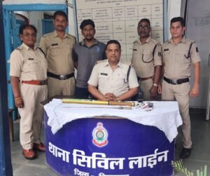 पुलिस अधीक्षक महोदय श्री रजनेश सिंह के आदेश पर अतिरिक्त पुलिस अधीक्षक शहर श्री उमेश कश्यप, अतिरिक्त पुलिस अधीक्षक एसीसीयू श्री अनुज कुमार नगर पुलिस अधीक्षक सिविल लाईन श्री उमेश प्रसाद गुप्ता द्वारा थाना सिविल लाईन एवं एसीसीयू से टीम गठित कर त्वरित कार्यवाही का आदेश दिया गया इसी दौरान दिनांक 16.04.2024 को मुखबीर से सूचना मिली की आरोपी रितेश निखारे उर्फ मैडी अपने साथीयों के साथ जतिया तलाब रोड जरहाभांठा के पास अपनी काले रंग की ऑडी कार क्रमांक CG10AN 9100 से शहर छोडकर भागने की फिराक में है। थाना सिविल लाईन एवं एसीसीयू की टीम द्वारा मिनिबस्ती जरहाभांठा जतिया तलाब रोड को चारों तरफ से घेराबंदी किया गया। पुलिस को आते देखकर आरोपी रितेश निखारे उर्फ मैडी की कार में बैठे उसके अन्य साथी कार का दरवाजा खोलकर कूदकर भाग गये मौके पर आरोपी रितेश निखारे उर्फ मैडी को घेराबंदी कर पकडा गया आरोपी के कब्जे से कार की डेसबोर्ड से एक नग, रिवाल्वर कार की पीछली शीट से एक नग तलवार एवं एक नग बेसबाल जप्त किया गया। आरोपी द्वारा गैंग बनाकर आमजनों में दहशत गर्दी फैलाने एवं लोगों में अपना डर पैदा करने तथा अपने नाम को प्रचलित करने के उद्वेश्य से अपराधों को अंजाम दिया जाता रहा है।