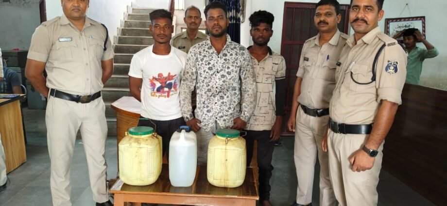 पुलिस अधीक्षक महोदय बिलासपुर श्री रजनेश सिंह (भा.पु.से.) के द्वारा जिले में नशे के व्यापारियों पर अंकुश लगाने एवं प्रहार अभियान के तहत लगातार कार्यवाही करने हेतु निर्देशित किया गया है। जिसके परिपालन मे अतिरिक्त पुलिस अधीक्षक महोदया (ग्रामीण) श्रीमती अर्चना झा एवं अनुविभागीय अधिकारी (पुलिस) कोटा श्री मति नुपूर उपाध्याय के मार्गदर्शन में थाना प्रभारी प्रशि. आईपीएस अजय कुमार के द्वारा थाना रतनपुर क्षेत्र में मुखबीर तैनात किया गया है। जरिये मुखबीर से सूचना मिली कि गाँधीनगर रतनपुर में कई जगहों पर भारी मात्रा में अवैध महुआ शराब की बिक्री कोचियों द्वारा की जा रही है । मुखबीर सूचना पर थाना प्रभारी रतनपुर द्वारा टीम गठित कर मुखबीर के बताये स्थान गाँधीनगर रतनपुर में रेड कार्यवाही कर गाँधीनगर रतनपुर निवासी पुरूषोत्तम धीवर ऊर्फ मोटू के कब्जे से रानीपारा रतनपुर नहर के पास से 15 लीटर कच्ची महुआ शराब, गुलशन सारथी के कब्जे से मुक्तिधाम रतनपुर के पास से 15 लीटर कच्ची महुआ शराब व सुन्दर लाल धीवर ऊर्फ किट्टू से गाँधीनगर में 10 लीटर कच्ची महुआ शराब, कुल 40 लीटर कच्ची महुआ शराब कीमती 8,000 रूपये को जप्त कर आरोपियों के विरूद्ध आबकारी एक्ट के तहत कार्यवाही कर उक्त आरोपियों को न्यायिक रिमाण्ड पर भेजा गया।