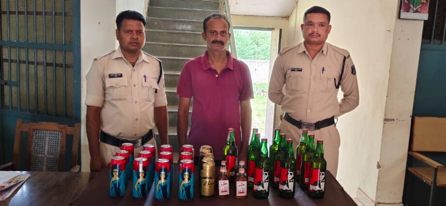 पुलिस अधीक्षक महोदय बिलासपुर श्री रजनेश सिंह (भापुसे) के द्वारा जिले में नशे, अवैध कारोबार करने वालो पर अंकुश लगाने विशेष अभियान प्रहार चलाकर कार्यवाही करने एवं थाना क्षेत्रांतर्गत निशीले पदार्थों का अवैध बिक्री व परिवहन करने वालों के विरूध्द अधिक से अधिक कार्यवाही करने के लिए निर्देशित किया गया है जिसके परिपालन में अवैध शराब बिक्री/परिवहन करने वालो के उपर सतत् निगाह रखी जा रही है। एवं लोगो को अवैध कारोबार करने वालो की सूचना पुलिस को देने श्रीमान पुलिस अधीक्षक महोदय द्वारा बताया गया था। दिनाँक 27-05-2024 को जरिये मुखबीर से सूचना मिला कि ग्राम भीमपुरी के मित्र मिलन ढाबा मे ढाबा संचालक राजीव मिश्रा शराब बिकी हेतु छुपा कर रखा है जिसकी सूचना तत्काल श्रीमान पुलिस अधीक्षक महोदय रजनेश सिंह (भापुसे) को देकर अतिरिक्त पुलिस अधीक्षक महोदया (ग्रामीण) श्रीमती अर्चना झा एवं श्रीमान अनुविभागीय अधिकारी (पुलिस) कोटा श्रीमति नूपूर उपाध्याय के मार्गदर्शन में थाना प्रभारी हरिश चंद्र टांडेकर के नेतृत्व में टीम गठित कर मुखबीर की सूचना तस्दीक एवं कार्यवाही हेतु हमराह स्टाफ एवं गवाह के ग्राम भीमपुरी मित्र मिलन ढाबा पहुंचकर मुखबीर के बताये हुए स्थान पर जाकर रेड कार्यवाही किये, और उक्त व्यक्ति के कब्जे से एक सफेद रंग के प्लास्टिक बोरी के अंदर रखा 05 नग गोवा स्पेशल शराब प्रत्येक में 180 एमएल भरा कीमती लगभग 650 रूपये,10 नग शिम्बा बियर बाटल प्रत्येक में 650 एमएल भरा कीमती लगभग 2200 रूपये, मेडोसा बियर केन 12 नग प्रत्येक में 500 एमएल भरा कीमती लगभग 2040 रूपये , बटवाईजर बियर केन 03 नग प्रत्येक में 500 एमएल भरा कीमती लगभग 600 रूपये कुल मात्रा 14.9 लीटर कुल कीमती लगभग 5490 रूपये को बरामद किया गया। आरोपी के कब्जे से उक्त शराब को जप्त कर आरोपी के विरूद्ध धारा 34(2) आबकारी एक्ट के तहत कार्यवाही किया जाकर आरोपी को ज्युडिशियल रिमाण्ड पर भेजा गया।