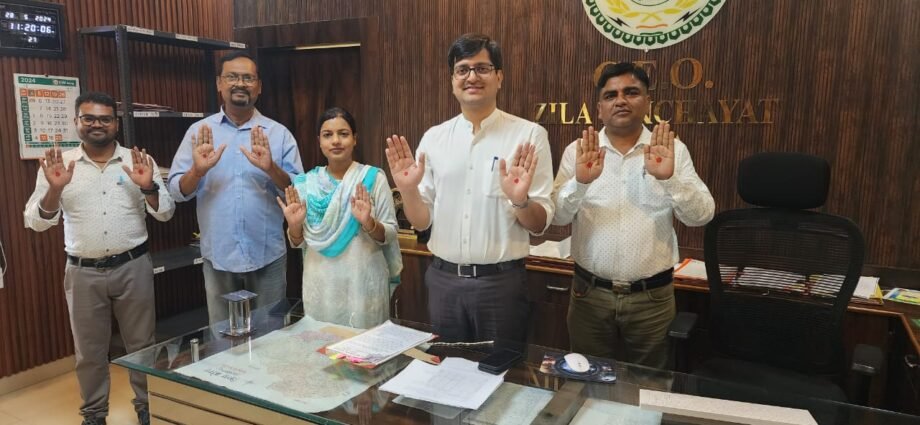 कलेक्टर एवं सीईओ जिला पंचायत ने हाथ में लाल निशान बना कर दिया मासिक धर्म स्वच्छता प्रबंधन का संदेश*