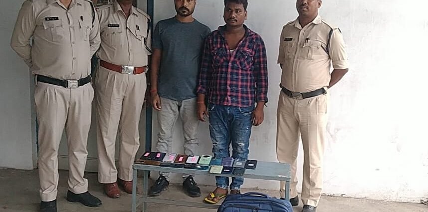 वरिष्ठ अधिकारियों से प्राप्त दिशा निर्देश के परिपालन में पुलिस के द्वारा *सजग कोरबा* अभियान के तहत लगातार कार्यवाही किया जा रहा है इसी तारतम्य में सायबर सेल कोरबा की टीम एवं सीएसईबी चौकी पुलिस शहर में पेट्रोलिंग के दौरान मुखबिर से सूचना प्राप्त हुई की तुलसीनगर कोरबा में सामुदायिक भवन के पास झारखण्ड राज्य से आये 02 लड़के बहुत सारा पुराना मोबाईल फोन रखे है तथा बिक्री करने के लिये ग्राहक तलाश रहे है की सूचना पर वरिष्ठ अधिकारियों को तत्संबंध में अवगत कराकर आवश्यक दिशा निर्देश प्राप्त किया गया बाद मुखबिर के बताएं अनुसार हमराह स्टाफ एवं तुलसीनगर सामुदायिक भवन के पास घेराबंदी कर मुखबीर के बताए हुलिये के 02 लडकों को पकड़ा गया, जिन्होने पुछताछ पर अपना-अपना नाम मनोरंजन कुमार मण्डल पिता श्रीराम मण्डल उम्र 24 साल सा० महाराजपुर बाजार थाना तालझाड़ी जिला साहेबगंज (झारखण्ड) एवं लोबिन कुमार महतो पिता लक्ष्मीप्रसाद महतो उम्र 28 साल सा० बाबुपुर थाना तीनपहाड़ जिला साहेबगंज (झारखण्ड) का होना बताए, जिनसे कोरबा आने जाने का कारण पुछने पर टाल मटोल करने लगे तथा कड़ाई से पुछताछ करने पर अपने गांव से आकर बाजारों में चोरी करना बताएं। उनके द्वारा बुधवारी बाजार कोरबा में मोबाईल चोरी करना बताए जिनके कब्जे में रखे एक नीला रंग बैग को चेक करने पर चौकी सीएसईबी जिला कोरबा के अपराध कमांक 346, 349/2024 धारा 379 भा०द०वि० में चोरी गए 02 नग मोबाईल फोन के अलावा कुल 14 नग विभिन्न कम्पनियों के मोबाईल फोन बरामद हुआ, जिन पर आरोपियों के कब्जे से मोबाइल फोन को जप्त कर आरोपियों के विरुद्ध धारा 41(1-4) दं.प्र.सं./ 379,34 भा०द०वि० कायम किया गया। आरोपियों को गिरफ़्तार कर न्यायिक रिमांड में भेज दिया गया है।