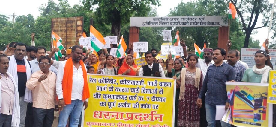 कोरबा / कटघोरा – कोरबा जिले की नगर पालिका परिषद दीपका के वार्ड क्रं. 07 कृष्णा नगर निवासीयो द्वारा कृष्णा नगर में रेलवे लाईन, कोल वाशरी और कोयला परिवहन सड़क के कारण चारो ओर से घिर जाने के कारण होने वाली परेशानीयों के कारण सम्मपूर्ण वस्ती अर्जन करने की मांग को लेकर शांति पूर्ण एक दिवसीय धरना प्रदर्शन कर एसडीएम को ज्ञापन सौंपा,जिसमे उनके द्वारा इन मांगों को लेकर ज्ञापन दिया गया
