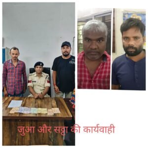 मामले का संक्षिप्त विवरण इस प्रकार है कि पुलिस अधीक्षक महोदय श्री रजनेश सिंह बिलासपुर द्वारा जिले के सभी थाना चौकी प्रभारीयों को जुआ/सट्टा पर अंकुश लगाने हेतु निर्देशित किया गया था आदेश के परिपालन मे अतिरिक्त पुलिस अधीक्षक महोदय यशहर श्री उमेश कश्यप एवं नगर पुलिस अधीक्षक महोदय एसिविल लाईन श्री उमेश प्रसाद गुप्ता के द्वारा आवश्यक दिशा निर्देश प्राप्त कर मुखबीर लगाकर अवैध गतिविधियों पर नजर रखी जा रही थी इसी क्रम मे दिनांक 31.07.2024 को मुखबीर सूचना मिला की चुचुहियापारा मुक्तिधाम मे कुछ जुआडियान रुपये पैसो का हारजीत का दांव लगाकर ताशपत्ती से जुआ खेल रहे है कि सूचना पर हमराह स्टाफ एवं गवाहन के मौके पर जाकर घेरा बंदी कर पकडा 1 विपीन कुमार तान्ती 2.राहुल कुमार को पकडा गया तथा आरोपियो के