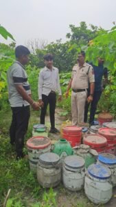 किया गया जहा पर भारी मात्रा में शराब बनाया जा रहा था मौके पर शराब बनाने हेतु उपयोग में लाने वाले बर्तन पास को नष्ट किया गया एवं 505 लीटर महुआ शराब जप्त कर थाना लाया गया शराब बनाने वाले आरोपी पुलिस को देखकर भाग गये मौके पर जप्त शराब 505 लीटर को थाना लाकर अज्ञात आरोपी के विरूद्ध 34 (2) आबकारी एक्ट के तहत कार्यवाही किया गया है ।
