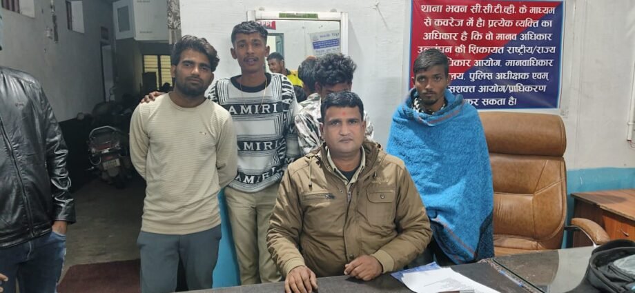 इसी परिप्रेक्ष्य में दिनांक 15.12.2024 के शाम थाना प्रभारी कोनी नवीन कुमार देवांगन को सूचना मिला कि बांबे आवासपारा देवनगर कोनी खेत के पास कुछ जुआरीयान रूपए पैसे का हार-जीत का दांव लगाकर जुआ खेल रहे हैं सूचना मिलने पर श्रीमान पुलिस अधीक्षक महोदय बिलासपुर श्री रजनेश सिंह द्वारा जुआ सट्टा पर कार्यवाही करने के निर्देशन पर अति .पुलिस अधीक्षक (शहर) श्री राजेन्द्र जायसवाल, नगर पुलिस अधीक्षक कोतवाली श्री अक्षय प्रमोद के मार्गदर्शन में थाना सिटी कोतवाली पुलिस की टीम द्वारा मुखबीर सूचना के आधार पर तत्काल कोनी पुलिस टीम द्वारा मुखबिर के बताये स्थान पर चारों तरफ से घेराबंदी कर मौके पर रेड कार्यवाही किया गया, जहां मौके पर जुआ खेलते 4 आरोपीगण – *01. धनेश्वर दास मानिकपुरी पिता सुंदर दास मानिकपुरी उम्र 37 साल साकिन बंगालीपारा सरकंडा, 02. निखिल राव उर्फ निक्कू राव पिता नरेंद्र राव उम्र 22 साल साकिन देव नगर कोनी 03. प्रियांशु यादव उर्फ लक्की यादव पिता मदन लाल यादव उम्र 25 साल साकिन देव नगर कोनी 04. अमन केंवट उर्फ बांदा पिता अशोक केवट उम्र 19 साल साकी देवनगर कोनी थाना कोनी जिला बिलासपुर (छ.ग)* के कब्जे से मौके पर फड़ से कुल 3400 रुपए एवं ताश के 52 पत्ते, बैठने का तालपतरी, प्रकाश के लिए मोमबत्ती, मिलने पर वजह सबूत जप्त कर कब्जा पुलिस किया गया। 04 जुआरीयों के विरुद्ध वजह सबूत के आधार पर अपराध पंजीबद्ध कर गिरफ्तार कर विधिवत् कार्यवाही किया गया। उक्त कार्यवाही में थाना प्रभारी नवीन कुमार देवांगन के मार्गदर्शन में सउनि सुरेंद्र तिवारी, प्रधान आरक्षक अशफाक खान, आरक्षक थामेंद्र रातरे, दीपक मरावी, उदय पाटले, राकेश खांडे का विशेष योगदान रहा।