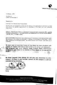 बकायादा प्रबंधक श्री मिश्रा ने ऑफिसियल बयान जारी कर बताया की 21 सितंबर 2024 को बैंक के वर्षगाँठ के अवसर पर माननीय मंत्री श्री लखन लाल देवांगन आमंत्रण पर कार्यक्रम में सम्मिलित हुए थे। इस अवसर पर सहकारी बैंक के पूर्व अध्यक्ष श्री देवेंद्र पांडे, भाजपा की पूर्व जिला अध्यक्ष अशोक चावलानी समेत अन्य अतिथिगण में शामिल हुए थे।