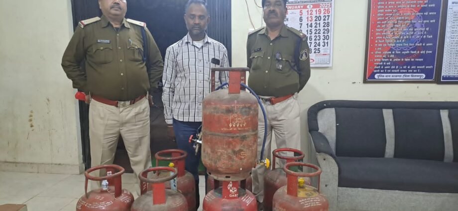 मामले का संक्षिप्त विवरण इस प्रकार है कि आज दिनांक 21.01.2025 को मुखबीर से सूचना मिला कि प्रभात चौक स्थित भव्य किचन केयर का संचालक भवुन प्रसाद साहू अपने दुकान में घरेलू रसोई गैस सिलिण्डर बिना किसी वैध अनुमति के रिफिलिंग का कार्य किया जा रहा है, उक्त सूचना के संबंध में पुलिस अधीक्षक महोदय बिलासपुर श्री रजनेश सिंह (भापुसे) को अवगत कराया गया जिनके द्वारा तत्काल कार्यवाही करने निर्देशित किये, जिसके पालन में अति0 पुलिस अधीक्षक महोदय बिलासपुर श्री उदयन बेहार एवं नगर पुलिस अधीक्षक सरकंडा श्री सिद्धार्थ बघेल के मार्गदर्शन में थाना प्रभारी सरकंडा निरीक्षक निलेश पाण्डेय के नेतृत्व में टीम तैयार कर मुखबीर के बताये स्थल पर रेड कार्यवाही किया गया जहां भव्य किचन केयर के संचालक भवुन प्रसाद साहू द्वारा अवैध रूप से घरेलू गैस सिलेण्डर रिफिलिंग करते हुये पाया गया जिससे उक्त कार्य के संबंध में वैध अनुमति प्रस्तुत करने नोटिस देने पर कोई अनुमति नहीं होना बताया जिससे आरोपी के विरूद्ध धारा सदर का अपराध घटित करना पाये जाने पर आरोपी के कब्जे से 9 नग घरेलू गैस सिलिण्डर जप्त कर आरोपी को विधिवत् गिरफ्तार कर आवश्यक वस्तु अधि. 1985 के तहत् कार्यवाही किया गया है।