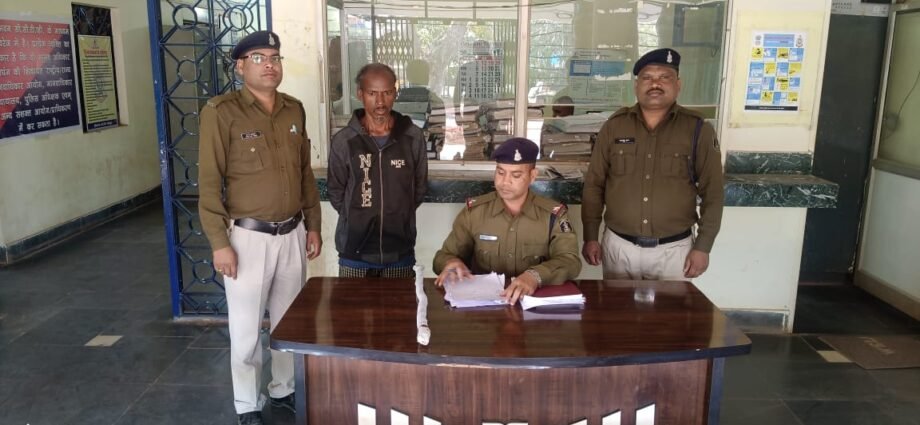 दिनांक 15.01.2025 को प्रार्थी फागुन सिंह धनुवार पिता स्व. समेलाल धनुवार उम्र 45 वर्ष ने थाने में रिपोर्ट दर्ज कराया कि उसका भतीजा मैकू धनुवार दिनांक 13.01.2025 एवं 14.01.2025 के मध्य दरमियानी रात्रि छेर छेरा त्यौहार के दिन अपनी पत्नी समुद्री बाई को चरित्र शंका की बात को लेकर डंडा से मारपीट कर हत्या कर अपनी 10 माह की पुत्री कु. सुमित्रा धनुवार को लेकर जंगल की ओर फरार हो गया है,रिपोर्ट पर अपराध पंजीबद कर विवेचना कार्यवाही में लिया गया और फरार आरोपी मैकू धनुवार का पता तलाश के दौरान आज दिनांक 21.012025 को पता चला कि फरार आरोपी मैकू राम धनुवार अपनी पुत्री से साथ मझगांव के जंगल में छुपा हुआ है तब थाना प्रभारी द्वारा अपने कोटा पुलिस टीम एवं ग्रामीणों के साथ मझगांव के जंगल में रेड कार्यवाही किया गया व फरार आरोपी मैकू राम धनुवार अपनी एक छोटी सी बच्ची के साथ पकड़ा गया जिसे घटना के संबंध में पूछताछ करने पर बताया की दिनांक 13.012025 एवं दिनांक 14.01.2025 के मध्य रात्रि अपनी पत्नी समुद्री बाई की चरित्र शंका की बात को लेकर गुस्से में आकर अपने घर में रखे तेंदू के डंडा से अपनी पत्नी समुद्री बाई के सिर,पीट माड़ी को मारपीट हत्या कर छोटी बच्ची को लेकर फरार हो जाना बताएं एवं आरोपी मैकू राम धनुवार के द्वारा घटना में प्रयुक्त एक तेंदू का डंडा को गवाहों के समक्ष पेश करने पर जप्त कर आरोपी के विरुद्ध अपराध सबूत पाए जाने से आज दिनांक 21.012025 को गिरफ्तार कर माननीय न्यायालय पेश किया गया ।