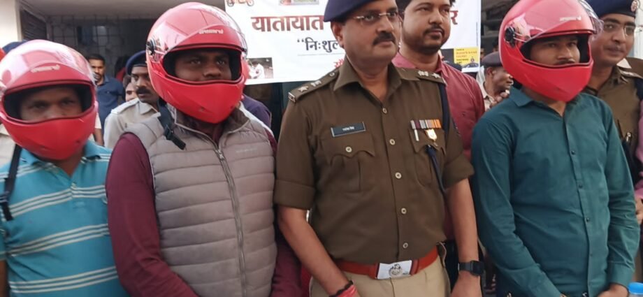 पुलिस अधीक्षक महोदय श्री रजनेश सिंह (भा.पु.से.) के तत्वाधान मे यातायात सडक सुरक्षा सप्ताह 2025 का माह जनवरी मे आयोजन किया जा रहा है। इसी क्रम मे दिनांक 23.01.2025 को थाना बिल्हा परिसर मे नोवा आयरल स्टील प्लांट दगौरी के जीएम श्री अमित कुमार, डीजीएम श्री कमल शर्मा की उपस्थिति मे श्री रजनेश सिंह (भा.पु.से.) बिलासपुर, श्रीमान अतिरिक्त पुलिस अधीक्षक महोदय (ग्रामीण) श्री अनुज कुमार, नगर पुलिस अधीक्षक महोदय चकरभाठा श्री डी. आर. टण्डन, थाना प्रभारी बिल्हा व जनमान्य नागरिको की उपस्थिति मे सभा आयोजित करते हुये लोगो को यातायात नियमो का पालन कराते हुये वाहन चलाते समय आवश्यक रूप से हेल्मेट पहने पहल करते हुये 300 से अधिक लोगो को निशुल्क हेल्मेट वितरण कर जागरूक किया गया।