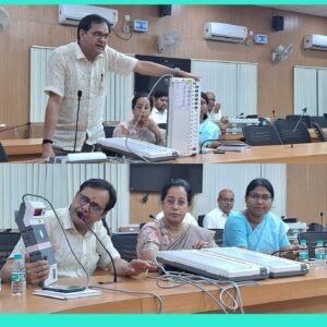 कोरबा 02 फरवरी 2025/ नगरीय निकाय निर्वाचन 2025 अंतर्गत नगर पालिक निगम कोरबा के 67 वार्डो में पार्षद पद सहित निगम के महापौर पद के लिए चुनाव होना है। इसके लिए 11 फरवरी को मतदान होगा। जिला निर्वाचन कार्यालय द्वारा इस सम्बंध में मतदाताओं को जागरूक करने और अपने मताधिकार का सही तरीके से ईवीएम में उपयोग करने के सम्बंध में राजनीतिक दलों के अभ्यर्थियों, मीडिया प्रतिनधियों सहित सेक्टर अधिकारियों को प्रशिक्षित किया गया। कलेक्टर एवं जिला निर्वाचन अधिकारी श्री अजीत वसंत के निर्देशन में रिटर्निंग अधिकारी श्री मनोज कुमार बंजारे की उपस्थिति में वरिष्ठ मास्टर्स ट्रेनर्स डॉ एम एम जोशी,जिला स्तरीय मास्टर्स ट्रेनर्स श्रीमती उपासना ओझा, श्रीमती लक्ष्मी राव ने इस चुनाव में प्रयुक्त हो रहे एम 2 मशीन के सम्बंध में विस्तार से जानकारी देते हुए मतदान के दौरान अपने पसंद के उम्मीदवार को बैलेट यूनिट में मतदान करने के तरीकों को बताया। उन्होंने बताया कि वार्ड क्रमांक 18 को छोड़कर 292 मतदान केंद्रों में दो बैलेट यूनिट होगी। जिसमे से एक महापौर पद के लिए और एक पार्षद के लिए होगी। पहले वाले बैलेट यूनिट में बटन के बाजू में सफेद रंग के कागज में महापौर पद के प्रत्याशी के नाम,फ़ोटो,चिन्ह चस्पा होगा तथा दूसरे बीयू में गुलाबी रंग में पार्षद की पहचान उनके चुनाव चिन्ह के साथ चस्पा होगी। दोनों को वोट देने के लिए अलग-अलग मशीनों में अलग-अलग बटन दबाने होंगे। इस दौरान बीप की आवाजें भी सुनाई देंगी।