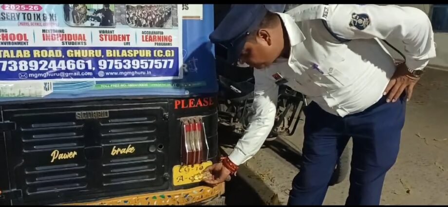 ऐसे वाहन चालकों द्वारा सिग्नल प्वाईन्ट में रेड लाईट वायलेशन करने एवं रॉग साईड चलने एवं अन्य मो.व्ही. एक्ट के उल्लंघन करने पर कार्यवाही करते समय कट मारकर तेज रफ्तार में गाड़ियों को चलाते हुए भागने एवं चालानी कार्यवाही से बचने का प्रयास करते है ऐसे दुपहिया वाहन चालकों पर आज यातायात पुलिस बिलासपुर द्वारा वाहनों एवं वाहन चालकों पर कठोर कार्यवाही कर सभी वाहनों से स्टीकर निकलवाया गया। साथ ही नम्बर प्लेट सही करवाकर नियमानुसार मो.व्ही. एक्ट की प्रकरण बनाया जाकर विधिवत चालानी कार्यवाही किया गया।