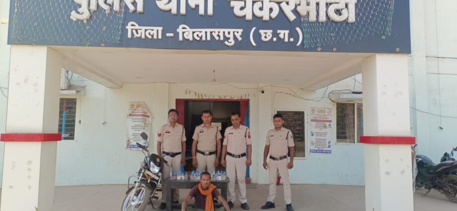 मामले का संक्षिप्त विवरण इस प्रकार है कि  पुलिस अधीक्षक  के लगातार अवैध शराब पर कार्यवाही के निर्देशानुसार, अतिरिक्त पुलिस अधीक्षक महोदय ACCU एवम सीएसपी महोदया चकरभाठा बिलासपुर के मार्गदर्शन में अवैध शराब, एवं नशे के खिलाफ कार्यवाही हेतु थाना चकरभाठा से टीम तैयार कर आज दिनांक 11.03.2025 को मुखबिर की सूचना पर ग्राम छतौना में आरोपी लक्ष्मी प्रसाद धुरी के कब्जे से *35 पाव देशी शराब 6.3लीटर कीमती 3150₹* एवं शराब परिवहन में प्रयुक्त *मोटर साइकिल CG 10BX5067 कीमती 80000₹* को जब्त कर आरोपी के खिलाफ आबकारी एक्ट के तहत कार्यवाही कर आरोपी को न्यायिक रिमांड में भेजा गया है.