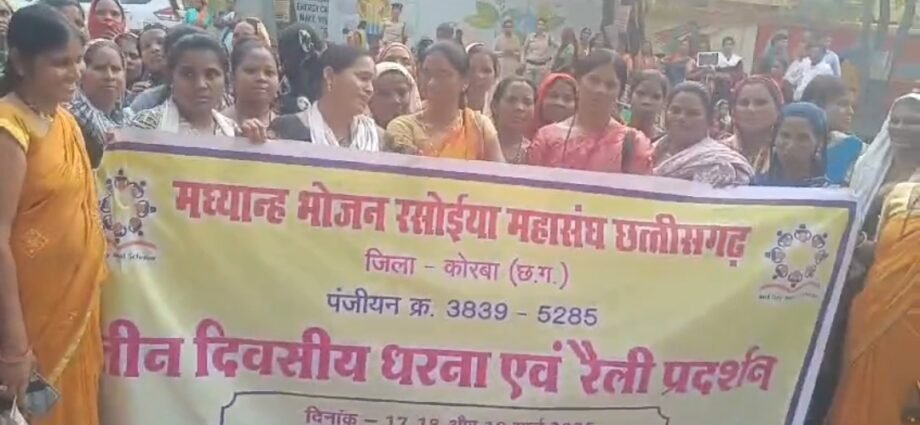 कोरबा। शिक्षा विभाग में कार्यरत मध्यान्ह भोजन रसोइयों ने अपने वेतन में 50 प्रतिशत वृद्धि की मांग को लेकर आज कलेक्टर कार्यालय का घेराव किया। प्रदर्शनकारी महिलाओं ने पैदल मार्च करते हुए कार्यालय तक पहुंचकर जमकर नारेबाजी की। पिछले तीन दिनों से लगातार विरोध प्रदर्शन कर रहीं इन महिलाओं ने आज कलेक्टर कार्यालय के बाहर धरना देकर सड़क जाम कर दिया। उनकी मांग थी कि “मोदी की गारंटी” के तहत किए गए वादे के अनुसार उनका वेतन बढ़ाया जाए।