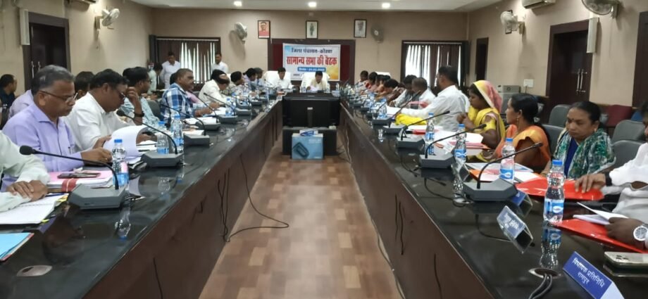 कोरबा, 24 मार्च 2025 – जिला पंचायत के सभाकक्ष में सोमवार को सामान्य सभा की बैठक आयोजित की गई। बैठक की अध्यक्षता जिला पंचायत अध्यक्ष श्री पवन कुमार सिंह ने की। सीईओ जिला पंचायत श्री दिनेश कुमार नाग की उपस्थिति में विभिन्न विभागों के कार्यों की समीक्षा की गई।