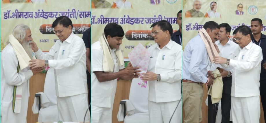 कोरबा 14 अपै्रल 2025/ भारत रत्न डॉ. भीमराव आम्बेडकर जयंती के अवसर पर आज राज्य शासन के दिशा निर्देश के तहत सामाजिक समरसता दिवस का आयोजन कलेक्ट्रेट सभा कक्ष में किया गया। कार्यक्रम में मुख्य अतिथि के रूप में छत्तीसगढ़ शासन में उद्योग, श्रम एवं वाणिज्य मंत्री श्री लखन लाल देवांगन शामिल हुए। उन्होंने कार्यक्रम में सभी को संविधान की उद्देशिका का वाचन कराया और संविधान की रक्षा के प्रति संकल्पित किया। मंत्री श्री देवांगन ने सभी को बाबा साहेब डॉ. आम्बेडकर की जयंती पर बधाई देते हुए कहा की आज का दिन गौरवान्वित होने का दिन है। आज पूरे देश में विभिन्न कार्यक्रम आयोजित किए जा रहे हैं। छत्तीसगढ़ में भी बाबा साहेब की जयंती को सामाजिक समरसता दिवस के रूप में मनाया जा रहा है। बाबा साहेब ने देश की संविधान की रचना की। आज देश इसी संविधान से संचालित हो रहा है। भारत का संविधान दुनिया का सबसे बड़ा और महान संविधान है, हम सभी की रक्षा इसी संविधान से होती है। संविधान रहेगा तो हम रहेंगे। संविधान से हमे आगे बढ़ने का अवसर मिलता है। हम सभी संविधान का पालन कर देश एकता और अखंडता को मजबूत बना सकते हैं। इस दौरान मुख्यमंत्री श्री विष्णु देव साय और उप मुख्यमंत्री श्री विजय शर्मा ने वर्चुवली जुड़ कर सभी को संबोधित किया और बाबा साहेब डॉ. आम्बेडकर की जयंती की सबको बधाई और शुभकामनाएं दी। मुख्यमंत्री ने राज्य में मोदी की गारंटी के तहत किए जा रहे कार्यां और जन कल्याणकारी योजनाओं को बताते  हुए पीएम आवास के लिए हितग्राहियों की पात्रता को शिथिल करने की जानकारी दी।    कार्यक्रम को संबोधित करते हुए मुख्य अतिथि श्री देवांगन ने आगे कहा की बाबा साहेब का जीवन हमेशा संघर्षों से बीता है, संघर्षों के बावजूद उन्होंने पीछे मुड़कर नहीं देखा। उनके कर्तव्यों और आदर्शां से सभी को प्रेरणा मिलती है। उन्होंने कहा कि संविधान के कारण ही बडे़-बडे़ उद्योग, कार्यालय, शासकीय व्यवस्था संचालित हो रही है। आज वे जीवित नहीं है लेकिन उनके द्वारा किए गए महान कार्य की बदौलत वे अमर और महान हो गए हैं। आज सामाजिक और राजनीतिक लोग बाबा साहेब को याद करते हुए उन्हें माल्यार्पण कर रहे हैं, इससे अन्य लोगों को भी डॉ. आम्बेडकर के विषय में जानने का अवसर मिल रहा है। मंत्री श्री देवांगन ने कहा की देश के प्रधानमंत्री, मुख्यमंत्री संविधान की रक्षा के लिए प्रतिबद्ध है। सामाजिक समरसता कार्यक्रम के माध्यम से आज मुख्यमंत्री श्री विष्णु देव साय प्रदेश की जनता से जुडे़। यह खुशी की बात है कि प्रधानमंत्री आवास योजना में नियमों को शिथिल किया गया है इससे अन्य लोगों को भी लाभ मिलेगा। उन्होंने समाज के प्रतिष्ठित व्यक्तियों का शॉल एवं श्रीफल से सम्मानित किया। इस अवसर पर उन्