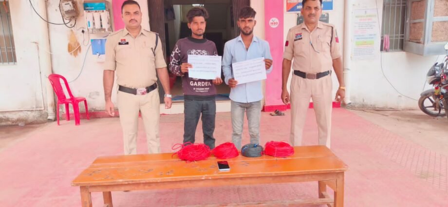 वरिष्ठ पुलिस अधीक्षक महोदय बिलासपुर श्री रजनेश सिंह के निर्देश एवम अतिरिक्त पुलिस अधीक्षक श्रीमती अर्चना झा एवं पुलिस अनुविभागीय अधिकारी श्रीमती नूपुर उपाध्याय के मार्गदर्शन मे थाना प्रभारी तखतपुर अनिल अग्रवाल द्वारा त्वरित कार्यवाही करते सायबर सेल के माध्यम से चोरी के मोबाइल का लोकेशन लेकर संदेही राजकुमार भारती एवं रमाकांत बंजारे को अभिरक्षा में लेकर पुछताछ करने पर चोरी करना स्वीकार किया जिसके कब्जे से 01 नग मोबाईल फोन व 04 बंडल बिजली फिटींग तार को बरामद कर जब्त् किया गया,