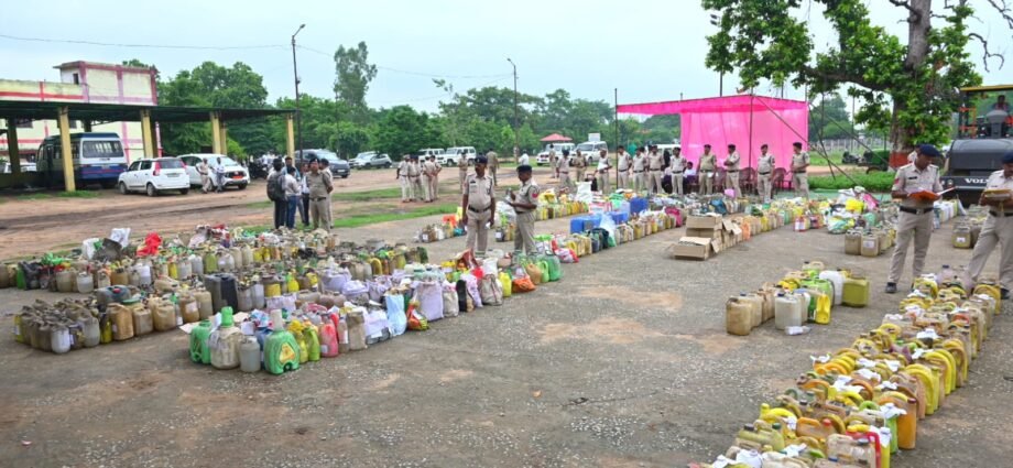 आज दिनांक 20.06.2025 को पुलिस लाइन, कोरबा में जिले के विभिन्न थाना एवं चौकियों में छत्तीसगढ़ आबकारी अधिनियम के तहत दर्ज न्यायालय से निराकृत 1866 प्रकरणों में जप्त लगभग 10,000 लीटर मदिरा का विधिवत नष्टीकरण किया गया।