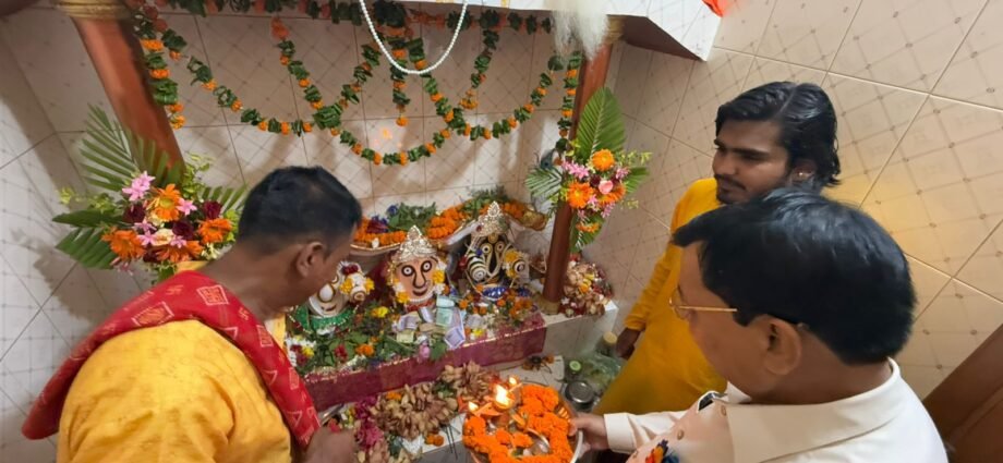 कोरबा. नगर विधायक, वाणिज्य, उद्योग एवं श्रम मंत्री श्री लखन लाल देवांगन शुक्रवार को रथ यात्रा के पावन अवसर पर शहर के दादर खुर्द, बालको नगर राम मंदिर, खरमोरा हाउसिंग बोर्ड कॉलोनी में आयोजित रथयात्रा में शामिल होकर विधि विधान के साथ भगवान जगन्नाथ का पूजन कर उनकी आरती उतारी। इसके बाद भक्तों ने भगवान जगन्नाथ, भाई बलभद्र और बहन सुभद्रा के रथ को खींचकर रवाना किया। इस अवसर पर महापौर श्रीमती संजू देवी राजपूत भी उपस्थित रहीं।