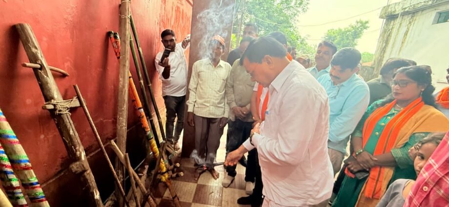 दादरखुर्द में मंत्री श्री देवांगन ने नांगर और क़ृषि कार्य में उपयोग होने वाले सामग्रियों की पूजा अर्चना की।