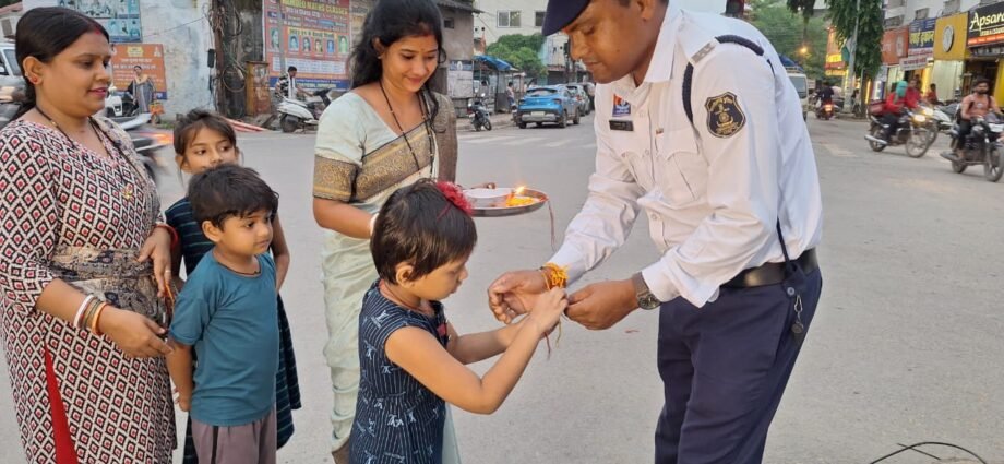 इसी तरह पुलिस जवान जो चौक चौराहे पर रक्षा बंधन जैसे पर्व के दौरान सुरक्षा व्यवस्था में तैनात रहे उनको भी महिला बच्चों द्वारा स्नेह पूर्वक राखी बाँधी गई जो लगातार हर पर्व उत्सव कानून व्यवस्था में प्रतिदिन शहर की सुरक्षा में तैनात जवानों को चाहे ट्रैफिक पुलिस हो या थाना चौकी में पदस्थ होकर पॉइंट पेट्रोलिंग और अन्य ड्यूटी में शहर की सुरक्षा में महत्वपूर्ण ज़िम्मेदारी निभाते हैं, महिला बच्चियों द्वारा रक्षा बंधन के पूर्व रक्षा सूत्र बाँधकर एक मार्मिक और पवित्र रिश्ता बनकर पुलिस अधिकारी कर्मचारी का सम्मान बढ़ाए ।