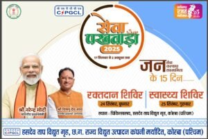 कोरबा 23 सितंबर 2025- हसदेव ताप विद्युत गृह (एचटीपीएस) कोरबा पश्चिम के विभागीय चिकित्सालय में सेवा पखवाड़ा के तहत 24 सितंबर को सुबह 10 बजे से 5 बजे तक रक्तदान शिविर का आयोजन रखा गया है। इसके दूसरे दिन 25 सितंबर को सुबह 10 बजे से दोपहर 1 बजे तक निःशुल्क स्वास्थ्य शिविर लगाया जाएगा। शासकीय कार्यक्रम के अनुसार यहां सेवा पखवाड़ा का आयोजन 17 सितंबर से 02 अक्टूबर तक किया जा रहा है।