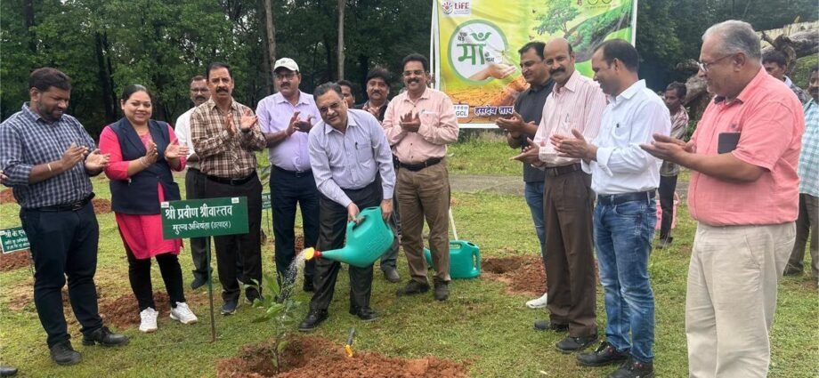 कोरबा 27 सितंबर 2025- हसदेव ताप विद्युत गृह (एचटीपीएस) कोरबा पश्चिम में जनसेवा का पर्व ‘सेवा पखवाड़ा’ में अभियान ‘एक पेड़ मां के नाम’ के तहत आवासीय परिसर में फलदार पौधे लगाए गए। मुख्य अभियंता श्री पीके. श्रीवास्तव ने कटहल का पौधा अपने हाथों से रोपा। इस मौके पर उन्होंने कहा कि ज्यादा से ज्यादा पेड़-पौधे लगाकर पर्यावरण का संरक्षण करना हमारा ध्येय होना चाहिए।