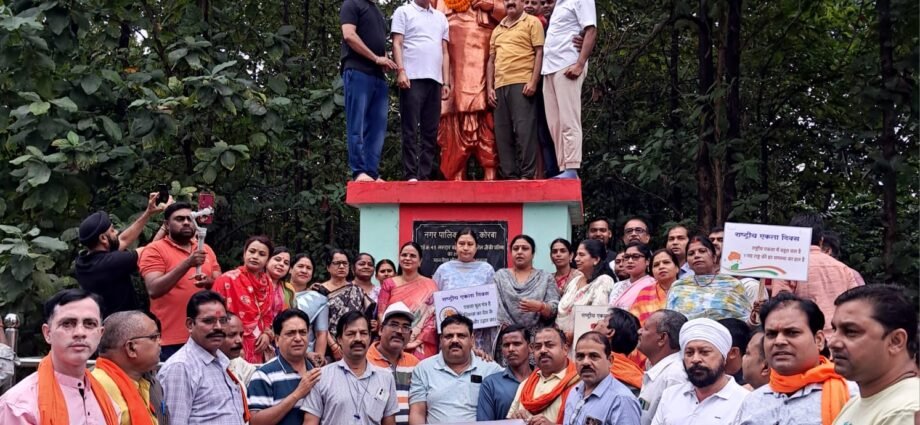 कोरबा। रियासतों में बटे भारत को एक सूत्र में पिरोकर अखंड भारत गणराज्य की नींव रखने वाले लौह पुरुष सरदार वल्लभभाई पटेल जी की 150 वीं जयंती पर राष्ट्रीय एकता दिवस का भव्य आयोजन भारतीय जनता पार्टी जिला कोरबा के उर्जावान जिलाध्यक्ष श्री गोपाल मोदी जी के नेतृत्व एवं कुशल मार्गदर्शन में बड़े ही उत्साह और देशभक्ति के माहौल में मनाया गया।