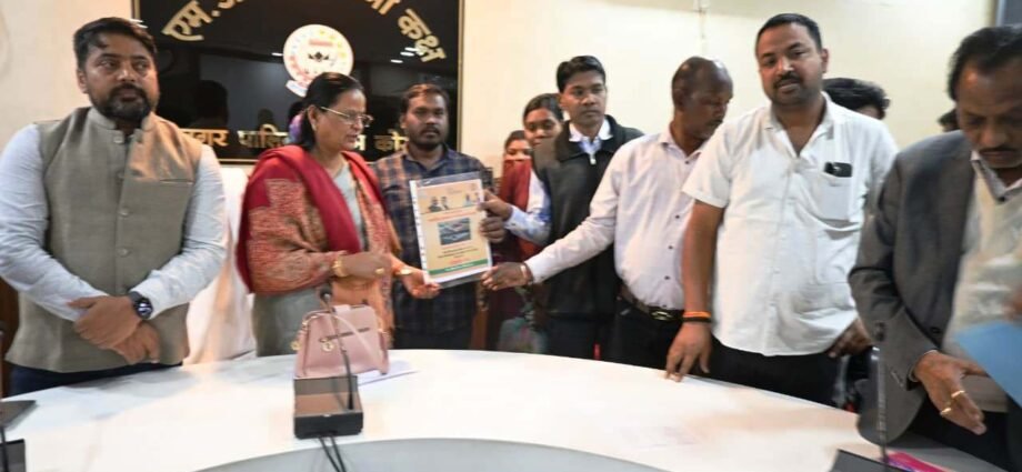 कोरबा 12 दिसम्बर 2025 – महापौर श्रीमती संजूदेवी राजपूत ने आज निगम कार्यालय साकेत में प्रधानमंत्री आवास योजना (शहरी) 2.0 ’’ मोर जमीन-मोरी मकान ’’ बी.एल.सी. घटक के 127 हितग्राहियों को आवास स्वीकृति पत्र एवं भवन निर्माण अनुमति पत्र प्रदान किया, इस मौके पर आयुक्त श्री आशुतोष पाण्डेय भी उपस्थित थे। महापौर श्रीमती राजपूत एवं आयुक्त श्री पाण्डेय ने हितग्राहियों को बधाई व शुभकामनाएं दी तथा समयसीमा में मकानों का निर्माण कार्य प्रारंभ कर निर्माण कार्य पूर्ण करने की सलाह दी।