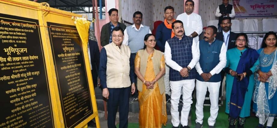 कोरबा 27 दिसम्बर 2025. नगर पालिक निगम कोरबा के टी.पी.नगर जोन के अंतर्गत आने वाले वार्ड क्र. 18, 15, 17, 03 एवं 04 में 02 करोड़ 28 लाख 60 हजार रूपये के नए विकास कार्य कराए जाएंगे। आज नर्सरीपारा कोहड़िया, ढोढ़ीपारा भैंसखटाल तथा राताखार बजरंग चौक में आयोजित भूमिपूजन कार्यक्रम के दौरान प्रदेश के उद्योग, वाणिज्य, श्रम, आबकारी व सार्वजनिक उपक्रम मंत्री श्री लखनलाल देवांगन के मुख्य आतिथ्य एवं महापौर श्रीमती संजूदेवी राजपूत की अध्यक्षता में इन विकास कार्यो का भूमिपूजन उनके करकमलों से किया गया।