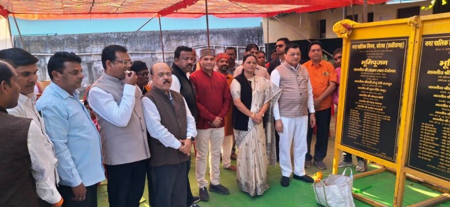 कोरबा 28 दिसम्बर 2025 -नगर पालिक निगम केरबा के कोसाबाड़ी जोनांतर्गत आने वाले वार्ड क्र. 19, 20, 22, 23, 24, 25, 35, 36 एवं 37 को आज 05 करोड़ 23 लाख रूपये के 22 नए विकास कार्यो की सौगात प्राप्त हुई। आर्य शिशु मंदिर बुधवारी व सतनाम नगर रिसदी में आयोजित पृथक-पृथक भूमिपूजन कार्यक्रम में प्रदेश के उद्योग, वाणिज्य, श्रम, आबकारी व सार्वजनिक उपक्रम मंत्री श्री लखनलाल देवांगन के मुख्य आतिथ्य एवं महापौर श्रीमती संजूदेवी राजपूत की अध्यक्षता में इन विकास कार्यो का भूमिपूजन उनके करकमलों से किया गया। इस मौके पर निगम के सभापति श्री नूतन सिंह ठाकुर, पूर्व सभापति व वरिष्ठ पार्षद श्री अशोक चावलानी, वरिष्ठ पार्षद नरेन्द्र देवांगन सहित वार्ड पार्षदों व जनप्रतिनिधियों की विशेष उपस्थिति रही।
