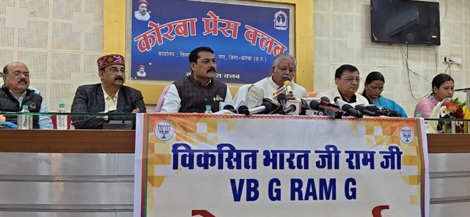 कोरबा। प्रधानमंत्री श्री नरेंद्र मोदी जी के नेतृत्व में ग्रामीण भारत के सर्वांगीण विकास की दिशा में एक ऐतिहासिक कदम उठाते हुए केंद्र सरकार द्वारा “विकसित भारत जी-राम-जी अधिनियम 2025” लाया गया है, जो गांवों को आत्मनिर्भर और ग्रामीण अर्थव्यवस्था को मजबूत बनाने में मील का पत्थर साबित होगा। उक्त बातें माननीय श्री धरमलाल कौशिक जी, विधायक बिल्हा विधानसभा, पूर्व विधानसभा अध्यक्ष एवं पूर्व प्रदेश अध्यक्ष भाजपा (छ.ग.) ने प्रेस क्लब, तिलक भवन टीपी नगर में आयोजित प्रेस वार्ता को संबोधित करते हुए कही। इस अवसर पर उद्योग मंत्री श्री लखन लाल देवांगन जी, भाजपा जिलाध्यक्ष श्री गोपाल मोदी जी, महापौर श्रीमती संजू देवी राजपूत जी, प्रदेश मंत्री सुश्री रितु चौरसिया जी, सह संभाग प्रभारी रायपुर श्री डॉ. राजीव सिंह जी उपस्थित रहे।