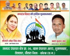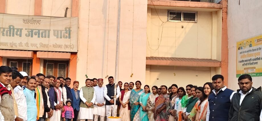 कोरबा। भारतीय गणतंत्र की 77वीं वर्षगांठ के पावन अवसर पर 26 जनवरी को भारतीय जनता पार्टी जिला कार्यालय पं. दीनदयाल कुंज टीपी नगर कोरबा में देशभक्ति और उत्साह का माहौल देखने को मिला। भाजपा जिलाध्यक्ष श्री गोपाल मोदी जी ने विधिवत तिरंगा फहराकर राष्ट्रीय ध्वज को सलामी दी। इस अवसर पर उपस्थित पदाधिकारियों एवं कार्यकर्ताओं को संबोधित करते हुए जिलाध्यक्ष श्री गोपाल मोदी जी ने कहा कि गणतंत्र दिवस हमारे